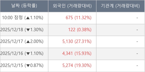 [표] 외국인ㆍ기관 순매매량 (단위 주)