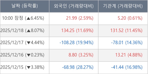 ※ 사모펀드 등 일부 기관의 순매매량은 표시되지 않음