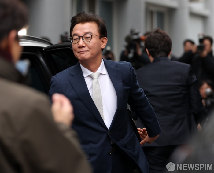 [서울=뉴스핌] 이길동 기자 = 통일교로부터 금품 수수 의혹을 받고 해양수산부 장관직을 내려놓은 전재수 더불어민주당 의원이 19일 오전 서울 서대문구 경찰청에 피의자 신분으로 출석하고 있다. 전 의원은 2018년 무렵 통일교 측으로부터 현금 2000만원과 1000만원 상당의 고가 시계를 수수한 혐의 등을 받고 있다. 2025.12.19 gdlee@newspim.com