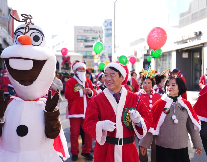 크리스마스 장식으로 꾸민 '산타버스'가 도심을 순회하는 이동형 축제로 운영되면서 어린이들과 주민들의 관심을 끌었다. 중앙초등학교에서는 캐럴과 함께 산타 이벤트가 열렸고, 이후 산타원정대는 중앙로를 행진하며 상가와 거리를 지나는 군민들과 인사를 나눴다.