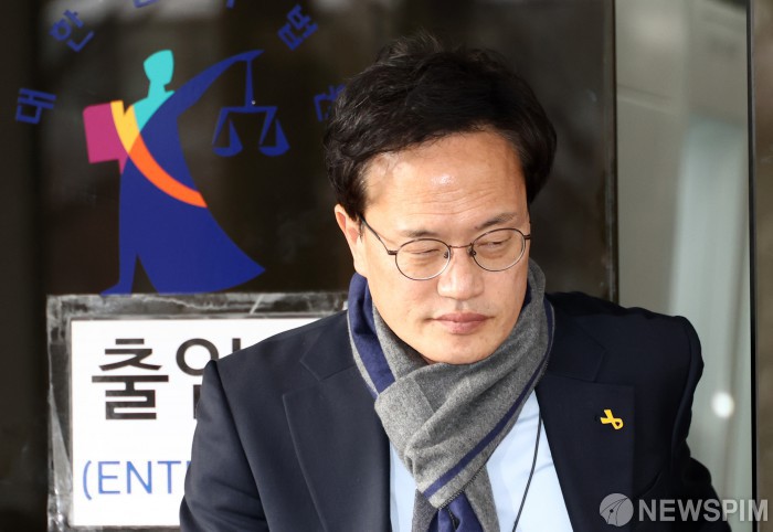 [서울=뉴스핌] 최지환 기자 = 박주민 더불어민주당 의원이 19일 오후 서울 양천구 서울남부지방법원에서 열린 패스트트랙 충돌 사건 선고기일에서 벌금 300만원 선고유예를 받은 뒤 법정을 나서고 있다. 2025.12.19 choipix16@newspim.com