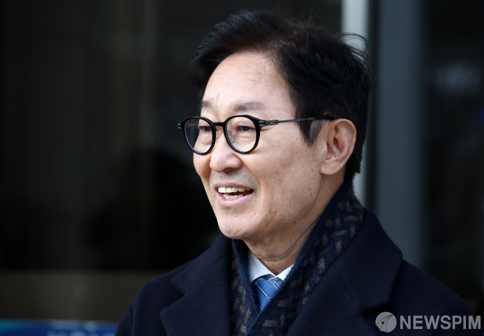 [서울=뉴스핌] 최지환 기자 = 박범계 더불어민주당 의원이 19일 오후 서울 양천구 서울남부지방법원에서 열린 패스트트랙 충돌 사건 선고기일에서 벌금 300만원 선고유예를 받은 뒤 입장을 밝히고 있다. 2025.12.19 choipix16@newspim.com