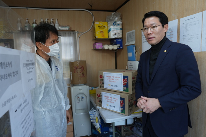 [포천=뉴스핌]신선호 기자=포천시의회 임종훈 의장은 지난 18일 가축전염병 유입 차단 및 방역을 위해 힘쓰고 있는 관내 가축방역 거점 소독초소를 방문해 근무자들을 격려하고 감사의 마음을 전했다.