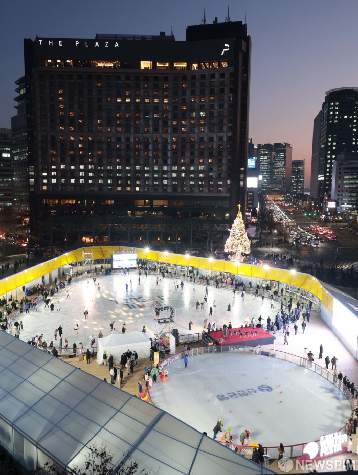 [서울=뉴스핌] 이길동 기자 = 19일 오후  서울시 중구 서울광장에 개장한 스케이트장에서 시민들과 관광객들이 스케이트를 즐기고 있다.서울광장 스케이트장은 19일 개장해 내년 2월8일까지 52일 동안 운영된다. 올해로 19번째 겨울을 맞는 서울광장 스케이트장은 올해 '윈터 링(Winter Ring)'이라는 새로운 콘셉트로 시민과 관광객을 맞이한다. 입장료는 2004년 첫 개장부터 변함없는 1000원이다.운영시간은 일요일부터 금요일의 경우 오전 10시부터 오후 9시30분까지, 토요일과 공휴일의 경우 오전 10시부터 오후 11시까지다. 2025.12.19 gdlee@newspim.com