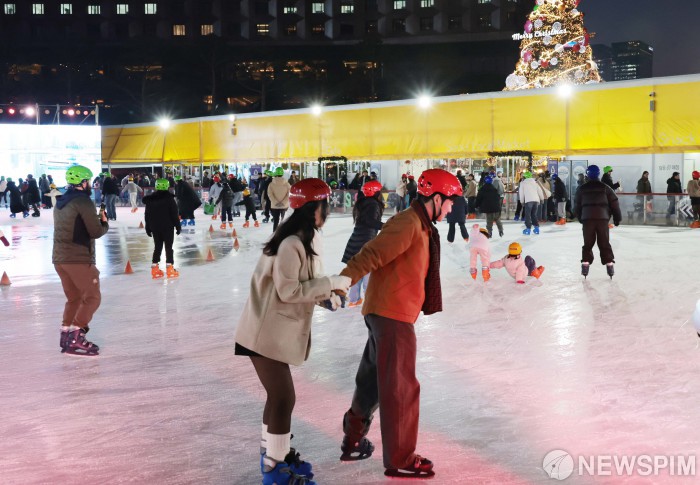 [서울=뉴스핌] 이길동 기자 = 19일 오후  서울시 중구 서울광장에 개장한 스케이트장에서 시민들과 관광객들이 스케이트를 즐기고 있다.서울광장 스케이트장은 19일 개장해 내년 2월8일까지 52일 동안 운영된다. 올해로 19번째 겨울을 맞는 서울광장 스케이트장은 올해 '윈터 링(Winter Ring)'이라는 새로운 콘셉트로 시민과 관광객을 맞이한다. 입장료는 2004년 첫 개장부터 변함없는 1000원이다.운영시간은 일요일부터 금요일의 경우 오전 10시부터 오후 9시30분까지, 토요일과 공휴일의 경우 오전 10시부터 오후 11시까지다. 2025.12.19 gdlee@newspim.com