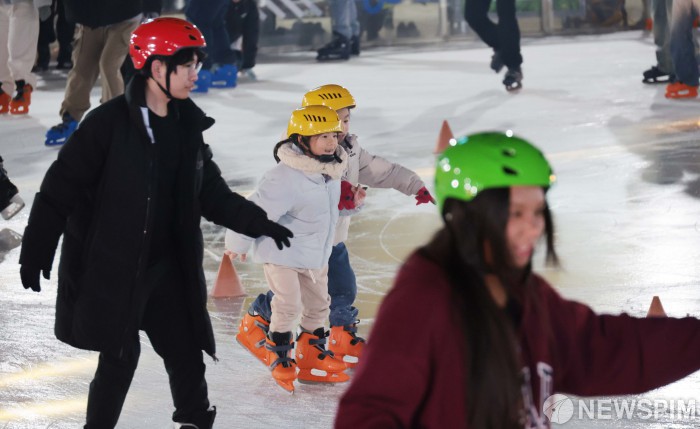 [서울=뉴스핌] 이길동 기자 = 19일 오후  서울시 중구 서울광장에 개장한 스케이트장에서 시민들과 관광객들이 스케이트를 즐기고 있다.서울광장 스케이트장은 19일 개장해 내년 2월8일까지 52일 동안 운영된다. 올해로 19번째 겨울을 맞는 서울광장 스케이트장은 올해 '윈터 링(Winter Ring)'이라는 새로운 콘셉트로 시민과 관광객을 맞이한다. 입장료는 2004년 첫 개장부터 변함없는 1000원이다.운영시간은 일요일부터 금요일의 경우 오전 10시부터 오후 9시30분까지, 토요일과 공휴일의 경우 오전 10시부터 오후 11시까지다. 2025.12.19 gdlee@newspim.com