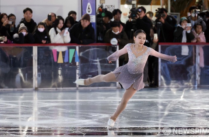 [서울=뉴스핌] 이길동 기자 = 19일 오후 서울 중구 서울광장에서 열린 2025년-2026년 서울광장 스케이트장 개장식에서 화려한 피겨 축하공연이 펼쳐지고 있다. 서울광장 스케이트장은 19일 개장해 내년 2월8일까지 52일 동안 운영된다. 올해로 19번째 겨울을 맞는 서울광장 스케이트장은 올해 '윈터 링(Winter Ring)'이라는 새로운 콘셉트로 시민과 관광객을 맞이한다. 입장료는 2004년 첫 개장부터 변함없는 1000원이다. 운영시간은 일요일부터 금요일의 경우 오전 10시부터 오후 9시30분까지, 토요일과 공휴일의 경우 오전 10시부터 오후 11시까지다. 2025.12.19 gdlee@newspim.com