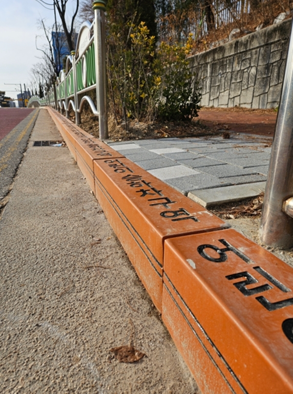 이번 사업은 기존 회색 콘크리트 형태의 보차도 경계석에 색상 도색과 안전 문구를 각인해 시설의 인식도를 높이고, 통학 차량의 정차 위치를 명확히 안내함으로써 교통안전 개선과 주변 도로 환경 정비를 동시에 도모하기 위해 추진했다.