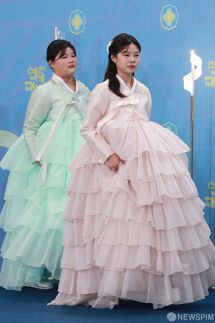 [서울=뉴스핌] 이형석 기자 = 방송인 이동국의 자녀 이설아(왼쪽)와 이수아가 20일 오후 서울 여의도 KBS에서 열린 연예대상 시상식 포토월에 참석하고 있다. 2025.12.20 leehs@newspim.com
