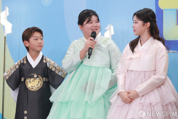 [서울=뉴스핌] 이형석 기자 = 방송인 이동국의 자녀 이설아가 20일 오후 서울 여의도 KBS에서 열린 연예대상 시상식 포토월에 인터뷰를 하고 있다. 왼쪽부터 이시안, 이설아, 이수아. 2025.12.20 leehs@newspim.com