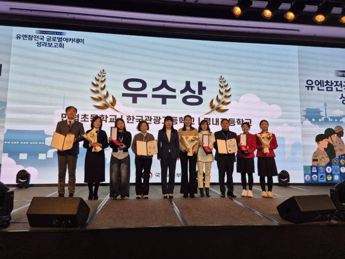 [평택=뉴스핌] 이성훈 기자 = 한국관광고등학교가 서울 JW메리어트 동대문스퀘어에서 열린 '2025년 유엔참전국 글로벌 아카데미 성과발표회'에서 우수학교로 선정돼 국가보훈부 장관상을 받았다.