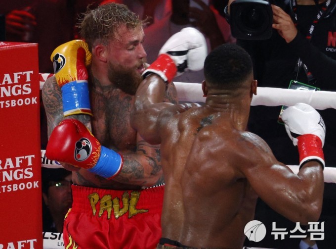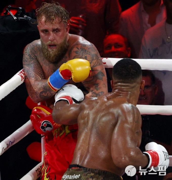 [마이애미 로이터=뉴스핌] 박상욱 기자= 제이크 폴이 20일(한국시간) 헤비급 경기에서 앤서니 죠슈아와 경기를 하고 있다. 2025.12.20 psoq1337@newspim.com
