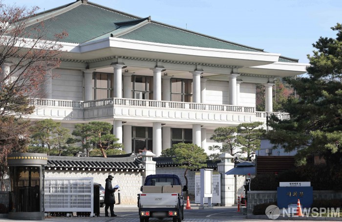 [서울=뉴스핌] 윤창빈 기자 = 21일 서울 종로구 청와대 시화문으로 화물차량이 들어서고 있다. 3년7개월만에 용신에서 청와대로 이전한 대통령실 집무실은 올해 말까지 이사를 마무리해 내년부터 본격 업무에 돌입할 예정이다. 2025.12.21 pangbin@newspim.com
