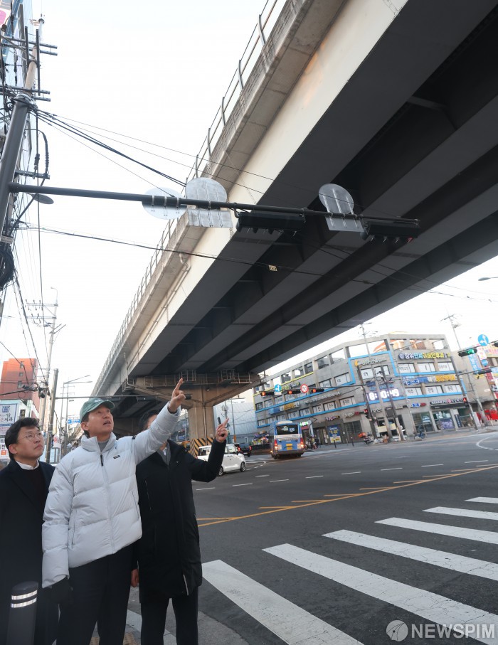 [서울=뉴스핌] 최지환 기자 = 오세훈 서울시장이 22일 오전 서울 성북구 북부간선도로 인근 강북횡단 지하고속도로 사업 예정지를 방문해 현장을 둘러보고 있다. 2025.12.22 choipix16@newspim.com