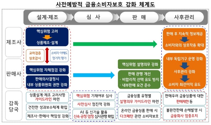 특히 상품의 설계·제조단계에서부터 판매·사후관리에 이르는 금융상품 생애주기에 걸쳐 단계별 금융소비자보호를 강화한다.