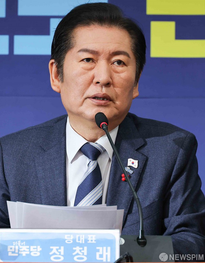 [서울=뉴스핌] 윤창빈 기자 = 정청래 더불어민주당 대표가 22일 서울 여의도 국회에서 열린 최고위원회의에서 모두발언을 하고 있다. 2025.12.22 pangbin@newspim.com