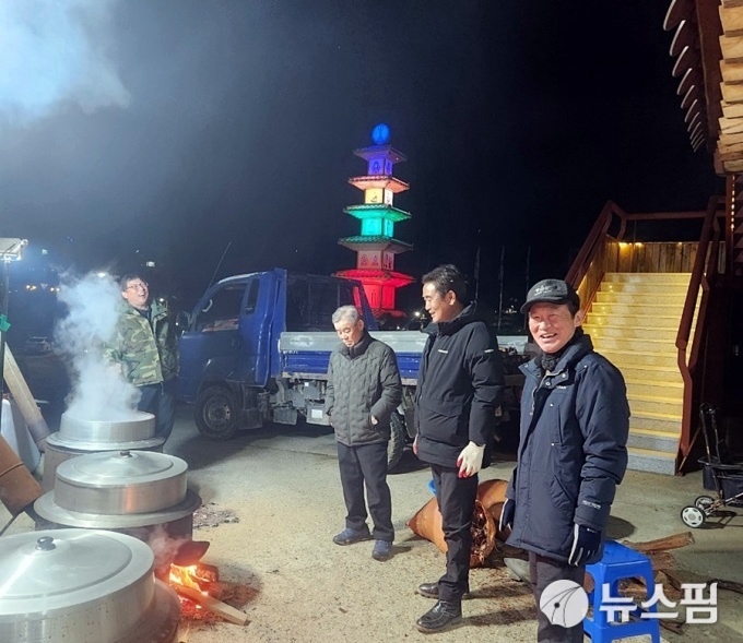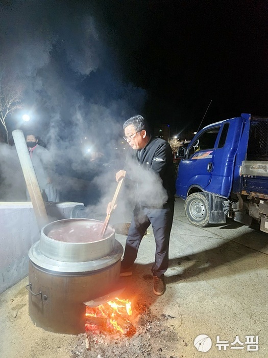[울진=뉴스핌] 남효선 기자 = 동짓날 전날인 21일 밤, 경북 울진군 울진읍 소재 천태종 봉화사 신도회원들이 '동지 팥죽 공양'에 쓰일 팥죽을 끓이고 있다. 2025.12.22 nulcheon@newspim.com