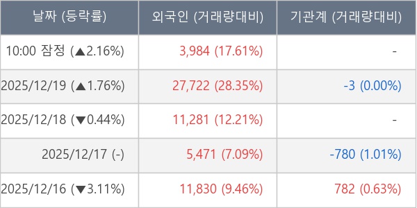 [표] 외국인ㆍ기관 순매매량 (단위 주)