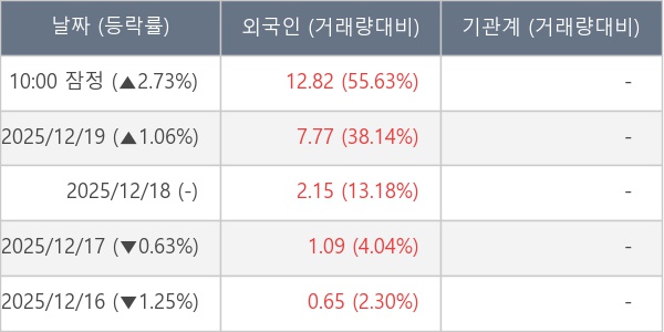 [표] 외국인ㆍ기관 순매매량 (단위 만주)