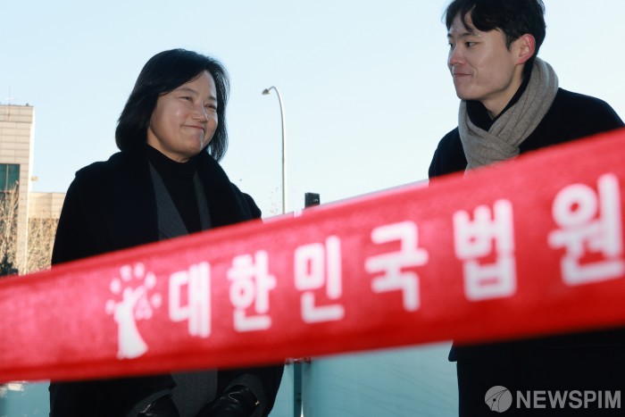 [서울=뉴스핌] 김학선 기자 = 최근 법무부 인사에서 고검 검사급 보직으로 사실상 강등된 정유미 검사장이 22일 오전 인사 효력을 멈춰달라며 낸 집행정지 신청 심문기일에 출석하기 위해 서울행정법원에 들어서고 있다. 2025.12.22 yooksa@newspim.com