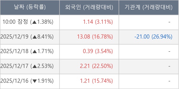 [표] 외국인ㆍ기관 순매매량 (단위 만주)