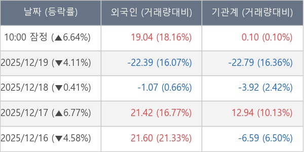 [표] 외국인ㆍ기관 순매매량 (단위 만주)