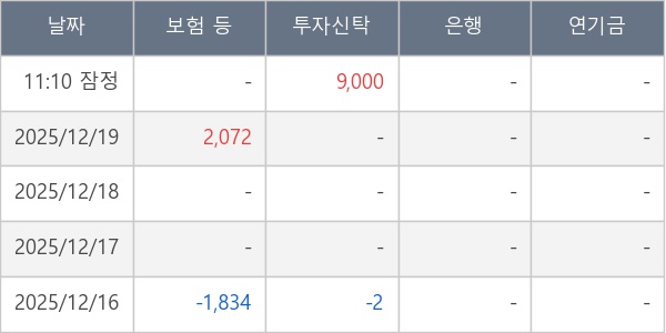 [표] 주요 기관별 순매매량 (단위 주)