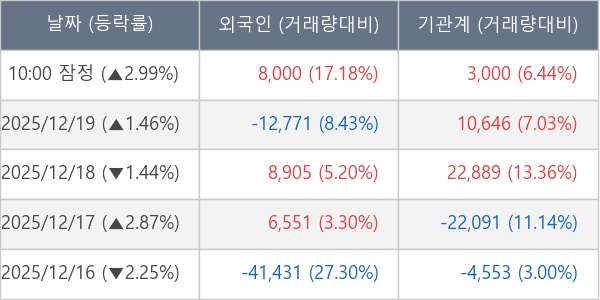 [장중수급포착] 원익QnC, 외국인/기관 동시 순매수… 주가 +2.99%