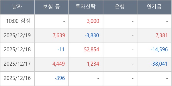 ※ 사모펀드 등 일부 기관의 순매매량은 표시되지 않음