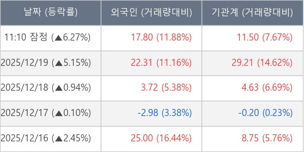 ※ 사모펀드 등 일부 기관의 순매매량은 표시되지 않음