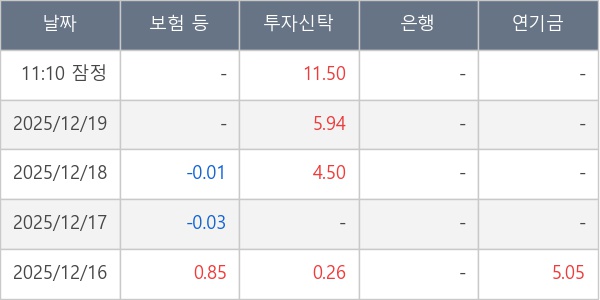 [표] 주요 기관별 순매매량 (단위 만주)