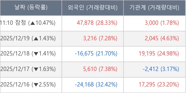 ※ 사모펀드 등 일부 기관의 순매매량은 표시되지 않음