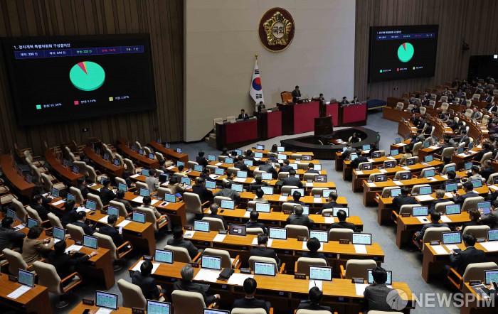 [서울=뉴스핌] 윤창빈 기자 = 22일 서울 여의도 국회에서 열린 본회의에서 정치개혁 특별위원회 구성결의안이 통과되고 있다. 2025.12.22 pangbin@newspim.com