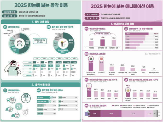 调查项目围绕使用频率、观看(使用)体验、消费与购买现状等各领域核心消费指标进行设计。为反映急剧变化的产业趋势,今年新增跨领域知识产权(IP)拓展和基于人工智能(AI)的内容认知项目。此举旨在超越单纯的消费行为分析,立体捕捉技术与环境变化下用户的最新认知。