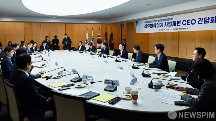 [서울=뉴스핌] 김정관 산업통상부 장관이 22일 오후 서울 중구 대한상공회의소에서 열린 석유화학업계 사업재편 CEO 간담회에서 모두발언을 하고 있다. 김 장관은 간담회에서 사업재편안을 제출한 석유화학기업들을 대상으로 의견을 수렴하고 신속한 추진을 독려했다. [사진=산업통상부] 2025.12.22 photo@newspim.com