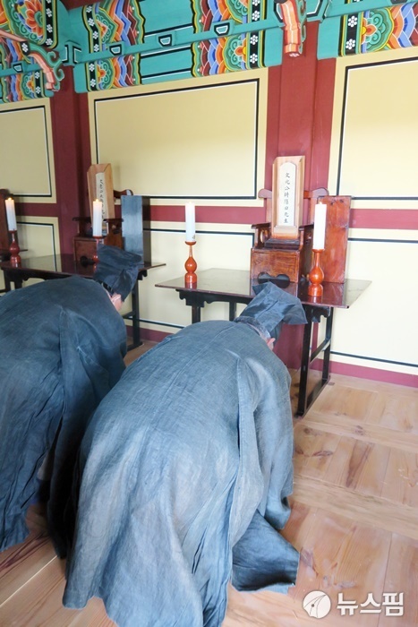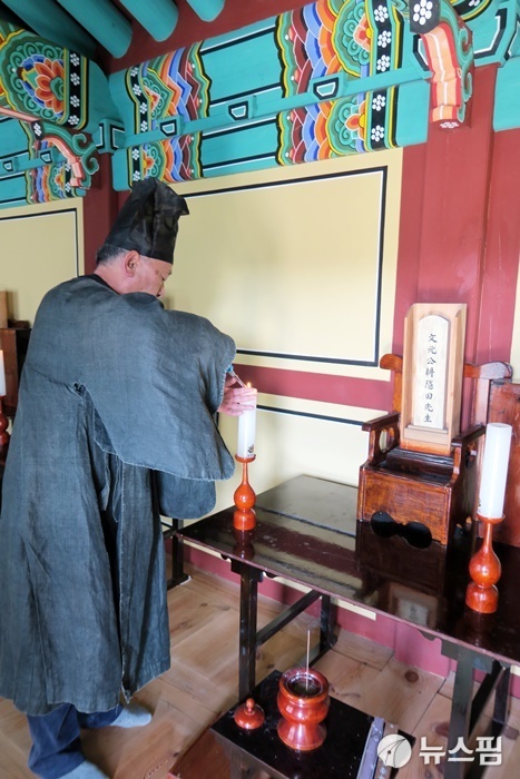 이어 선임 제장과 신임 제장은 사우인 경문사로 이동해 향과 초를 밝히고 4현의 신위에 각각 재배(再拜)를 하며 '파임 회의가 순조롭게 진행되고 제장이 교체되었음'을 고한다.