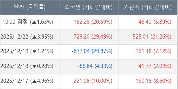 ※ 사모펀드 등 일부 기관의 순매매량은 표시되지 않음