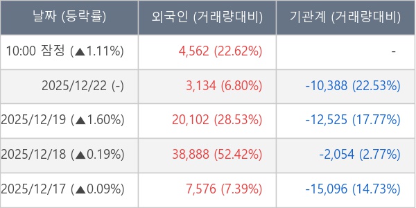 [표] 외국인ㆍ기관 순매매량 (단위 주)
