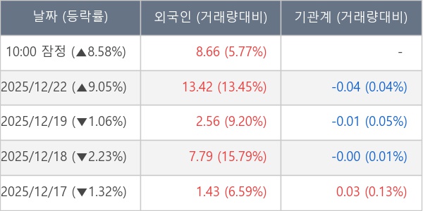 [장중수급포착] 인스코비, 외국인 5일 연속 순매수행진... 주가 +8.58%