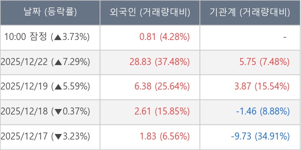 [표] 외국인ㆍ기관 순매매량 (단위 만주)