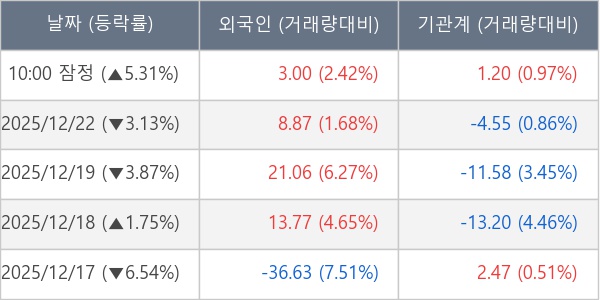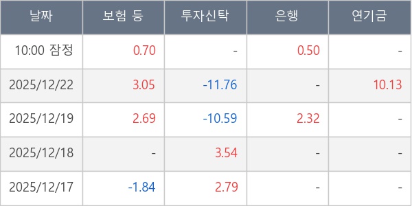 [표] 주요 기관별 순매매량 (단위 만주)
