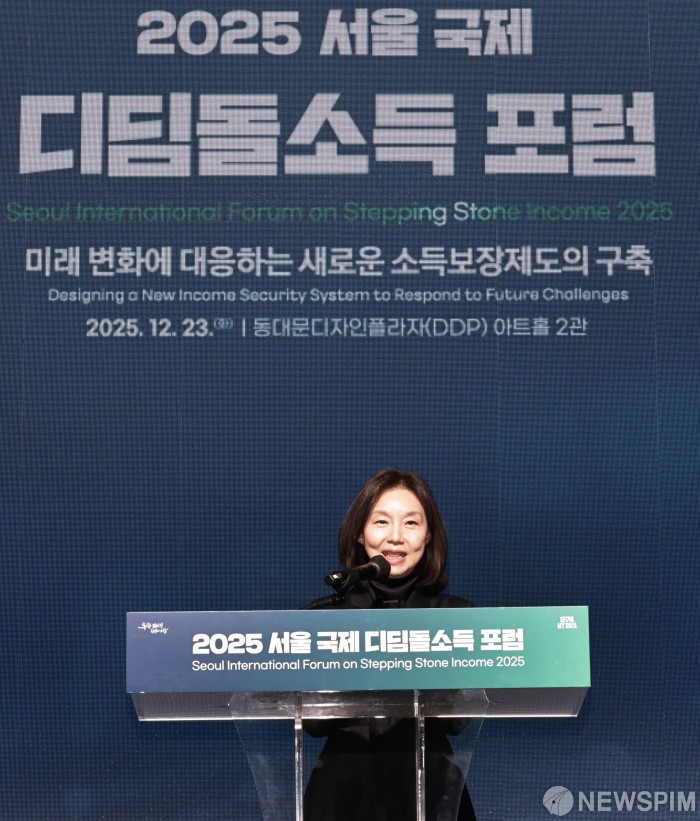 [서울=뉴스핌] 양윤모 기자 = 최호정 서울시의회 의장이 23일 오전 서울 중구 DDP 아트홀에서 '미래 변화에 대응하는 새로운 소득보장제도의 구축'을 주제로 개최된 '2025 서울 국제 디딤돌소득 포럼' 행사에 참석해 환영사를 하고 있다. 서울 국제 디딤돌소득 포럼은 서울시가 추진하는 대안적 복지모델인 서울 디딤돌소득을 중심으로, 국내외 석학과 정책 전문가들이 모여 미래 복지제도의 새로운 방향을 함께 모색하고 포용적 사회로 나아가기 위한 글로벌 논의를 이어가는 자리이다. 행사에는 오세훈 서울시장, 최호정 서울시의회 의장, 제임스 로빈슨 교수(2024 노벨경제학상 수상자), 강성진 고려대학교 경제학과 교수 등 250명이 참석했다2025.12.23 yym58@newspim.com