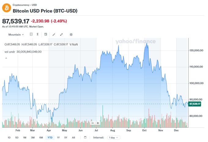 [서울=뉴스핌] 고인원 기자= 비트코인 가격은 전날 일시 9만달러선 회복을 시도하며 암호화폐 시장에 단기 반등을 제공했으나 23일 다시 8만7000달러대로 밀렸다. 금과 구리 등 실물 자산이 올해 사상 최고치를 경신하며 강세를 이어가는 가운데, 비트코인은 안전자산과 성장자산 어느 쪽에서도 뚜렷한 존재감을 보이지 못하고 있다는 평가가 나온다.