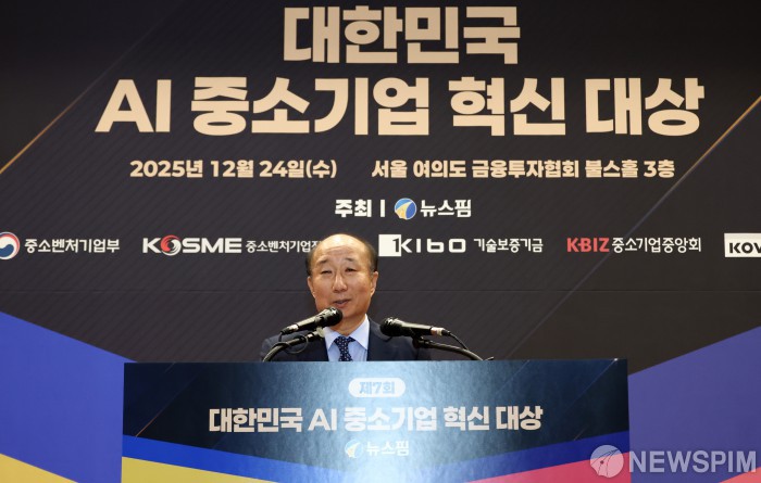 [서울=뉴스핌] 최지환 기자 = 유근석 뉴스핌 대표이사가 24일 오전 서울 영등포구 금융투자협회에서 뉴스핌 주최로 열린 대한민국 AI 중소기업 혁신 대상에서 개회사를 하고 있다. 2025.12.24 choipix16@newspim.com