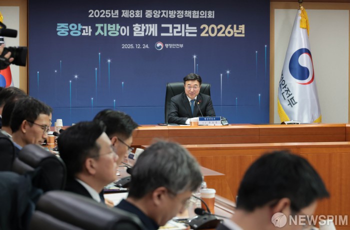 [서울=뉴스핌] 이길동 기자 = 윤호중 행정안전부 장관이 24일 서울 종로구 정부서울청사에서 열린 2025년 제8회 중앙지방정책협의회를 주재하며 모두 발언을 하고 있다. 2025.12.24gdlee@newspim.com