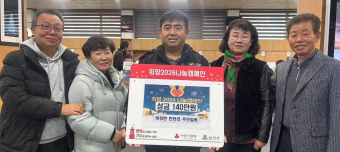 [삼척=뉴스핌] 이형섭 기자 = 강원 삼척시 하장면 번천리 주민들은 24일 하장면행정복지센터를 방문해 취약계층 지원을 위한 성금 140만 원을 기탁했다. 이번 성금은 번천리 주민들이 십시일반 정성을 모은 것으로 이웃들과 따뜻한 연말을 보내고자 기탁했다.