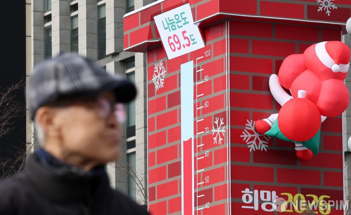 [서울=뉴스핌] 최지환 기자 = 24일 오후 서울 종로구 광화문광장에 설치된 사랑의 온도탑이 69.5도를 기록하고 있다. 2025.12.24 choipix16@newspim.com