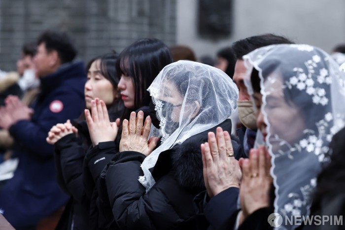 [서울=뉴스핌] 최지환 기자 = 성탄절인 25일 새벽 서울 중구 명동대성당에서 신자들이 주님 성탄 대축일 밤 미사를 봉헌하고 있다. 2025.12.25 choipix16@newspim.com