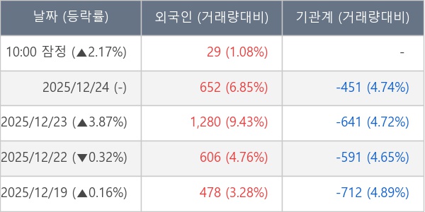 [표] 외국인ㆍ기관 순매매량 (단위 주)