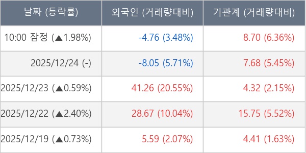 [표] 주요 기관별 순매매량 (단위 만주)